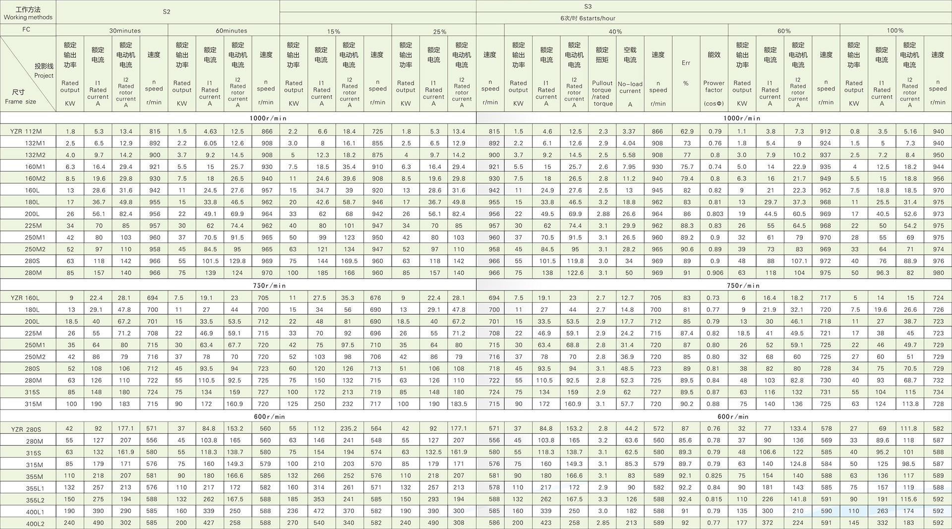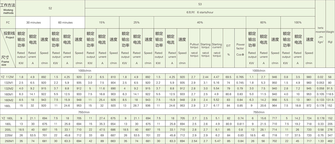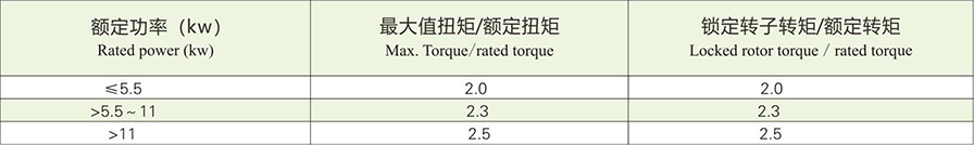 1.9 For YZ series motors,when working with basic duty type,the guaranteed values of the ratio of the maximum torque and the locked rotor torque to the rated torque under rated voltage are given in table 3.