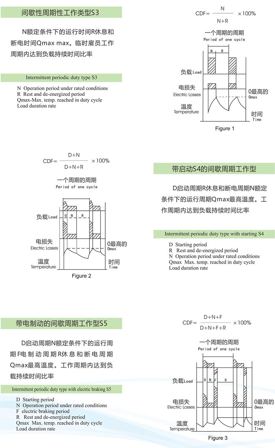 2.2 The motors are suitable for intermittent periodic loading.Depending on different loadings,there are following duty types: