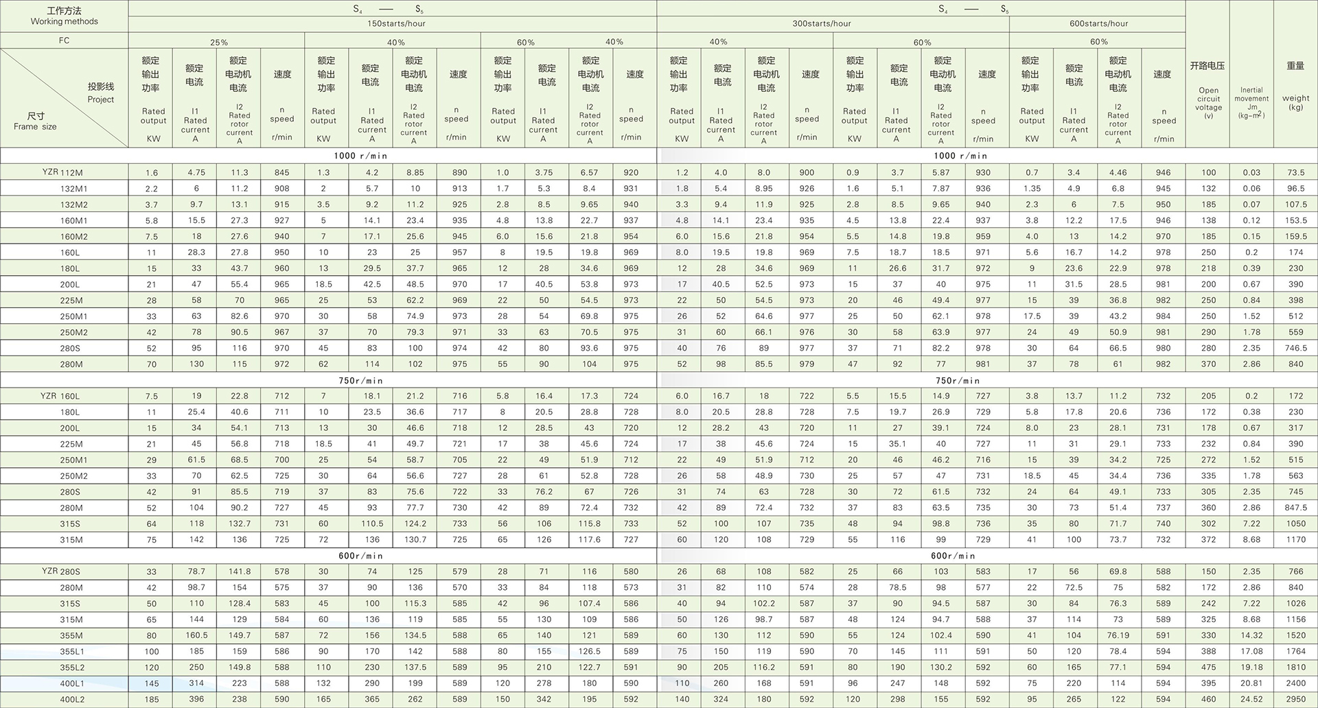 2.4 The basic duty type for the motors is S3-400.See Table 5 for technical data for each duty type.Information on nameplate of motor is generally provided as per basic duty type,and customized information is also possible.It is necessary to consult the manufacturer if the motors need to run in duty types other than S2~S5.