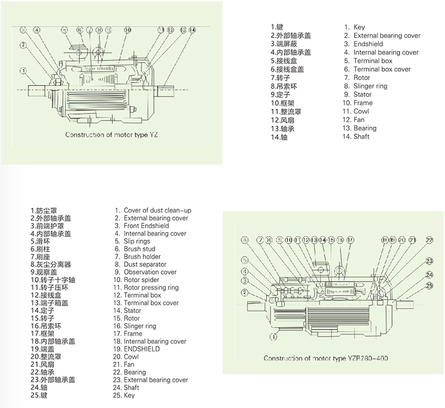 1.1 YZR and YZ series are of the latest design,featuring large overload capacity and high mechanical strength,and especially suitable for driving various types of metallurgical machines and cranes and/or other similar equipments.YZR series is wound-rotor motor and YZ series is cage motor.