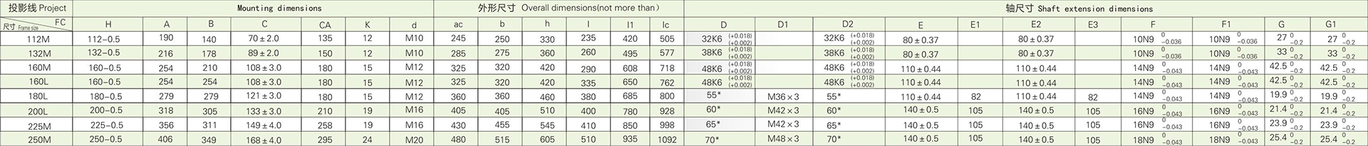 4.2 See Table 10 for overall mounting dimensions of YZ IMI 112-250