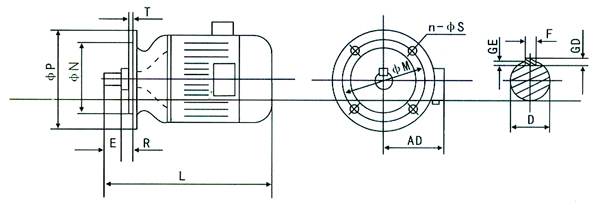 3.6 Type of drive:Motors are designed for coupling or spur gear drive.When spur gear drive is used,the pitch diameter of the pinion should not be less than twice of that of the shaft extension