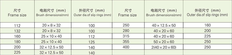 3.8 Brush type is J201,and its specification is given in Table 7
