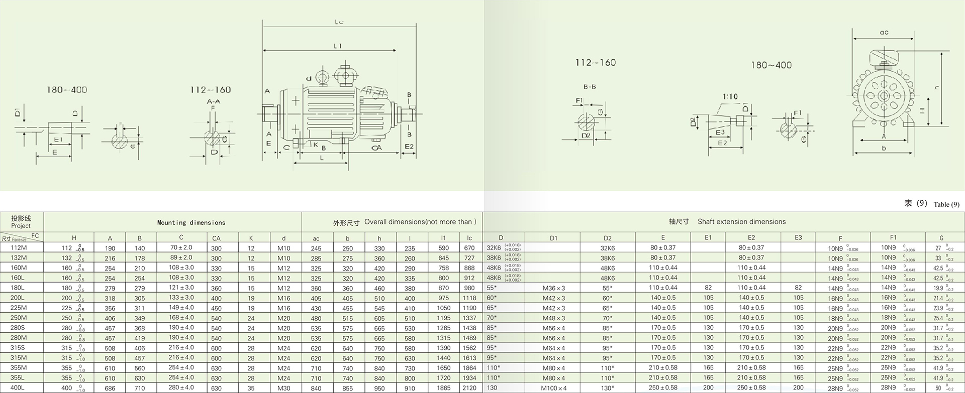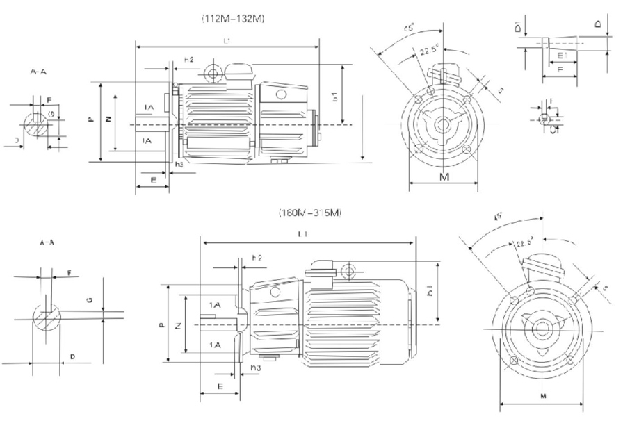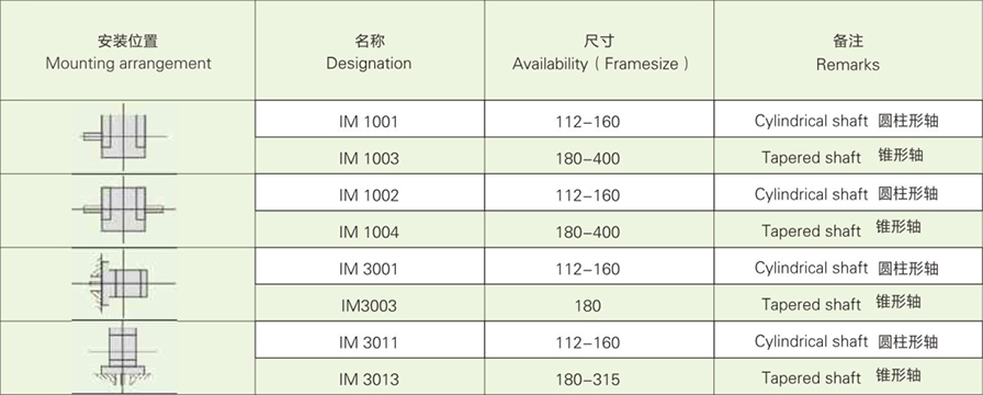 3.6驱动类型:电机设计用于联轴器或正齿轮驱动。使用正齿轮传动时,小齿轮的节距直径不应小于轴延伸部分的两倍