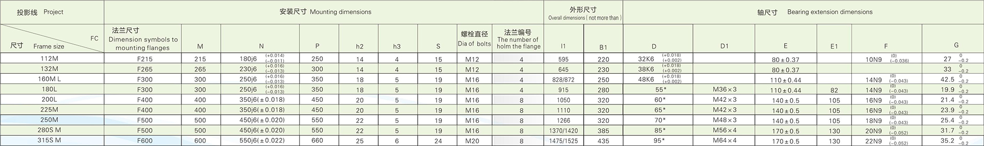 | 型号/项目 | 功率KW | 轴伸花键 | L1 | L2 | L3 | Φ1 | Φ2 | Φ3 | Φ4 |